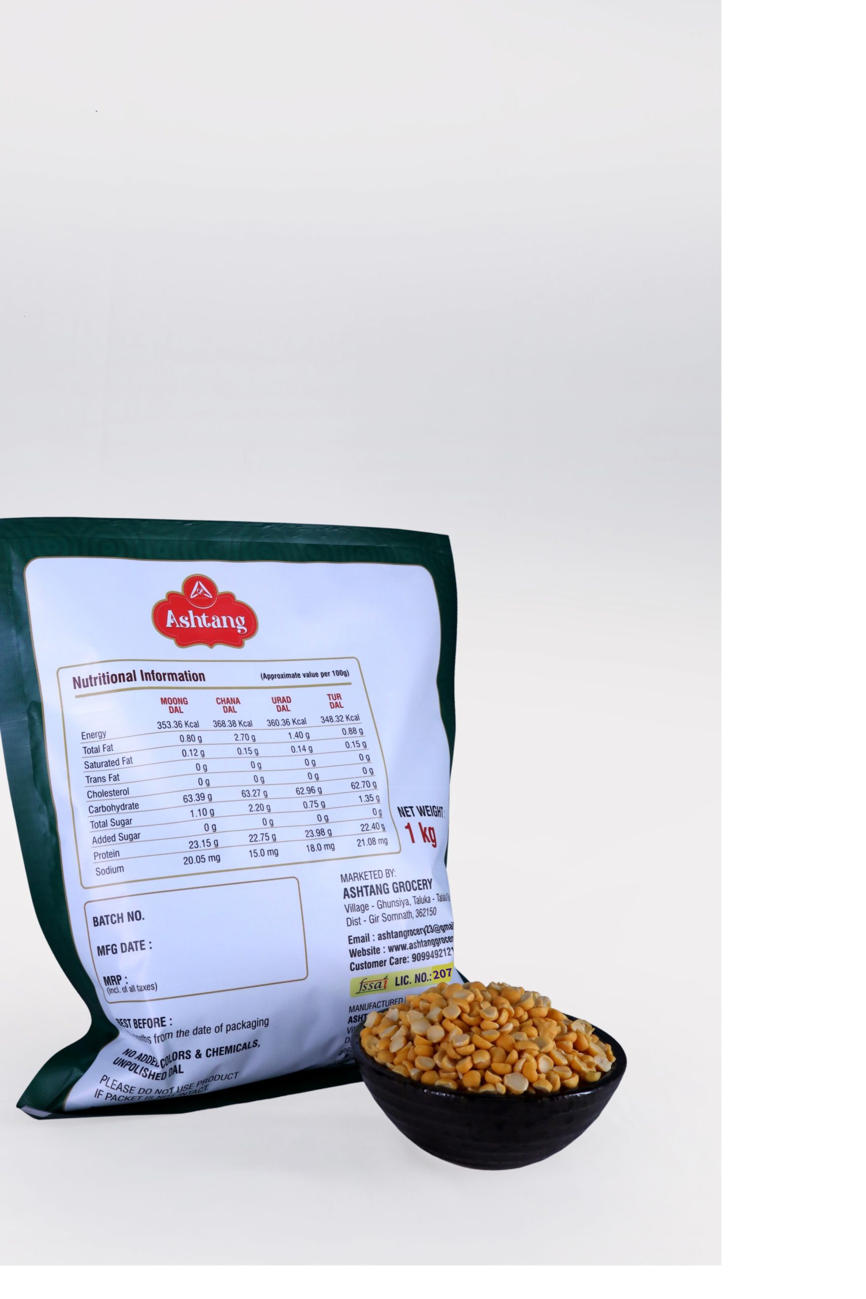 The raw chana dal is first soaked in warm water for 5 to 6 hours. It is then crushed manually on Indian grinding stone, and then the dal with skin on it is cleaned by hand, and the best quality is separated and packed.